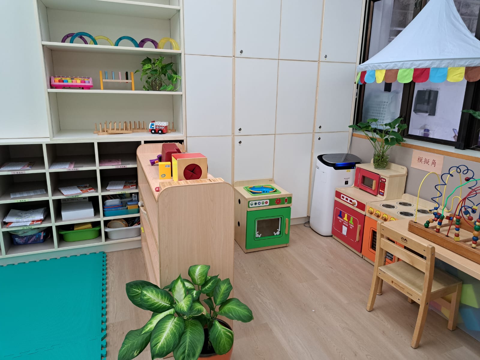 - 校舍設有不同的區角和陳設,如語言、情意、美感及體能等,供幼兒活動時使用。